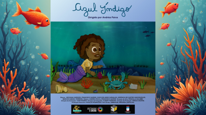 ‘Azul Índigo’ é voltado ao público infantil e utiliza a técnica de stop motion com recortes (cutout) para contar a história de Iara, uma menina-sereia ativista, e seu amigo caranguejo Juva. Juntos, eles exploram ecossistemas marinhos que estão sendo devastados pela poluição.