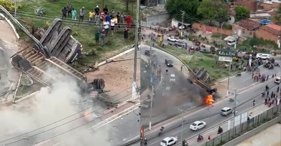 Na tarde desta quinta-feira, 19 de outubro, uma carreta que transportava uma retroescavadeira capotou e incendiou-se na Avenida Rota do Mar, em Guaxuma, na região Litoral Norte de Maceió. O incidente ocorreu por volta das 17h e rapidamente chamou a atenção de motoristas que passavam pelo local.