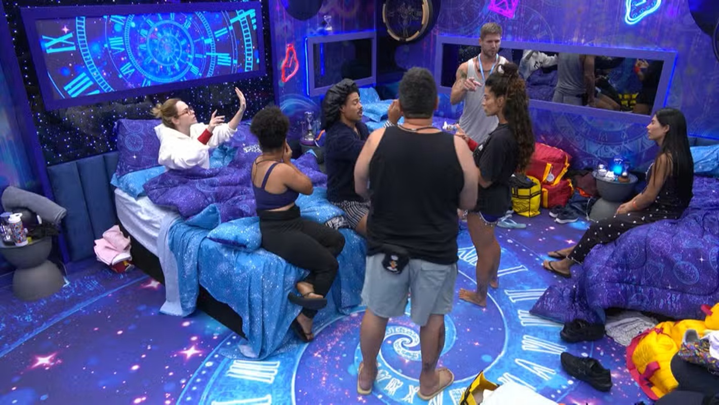 A controvérsia aumentou ainda mais com a chegada de novos participantes ao cômodo, onde a discussão sobre quem deve dormir onde se intensificou. “Quem não dormiu no chão vai ter que se adaptar”, defendeu Ana Paula, conhecida como Veterana. Babu, outro participante, questionou se havia algum problema em novas pessoas ocuparem o espaço, e Ana Paula foi direta: “Não é um problema, mas a situação precisa ser analisada”.