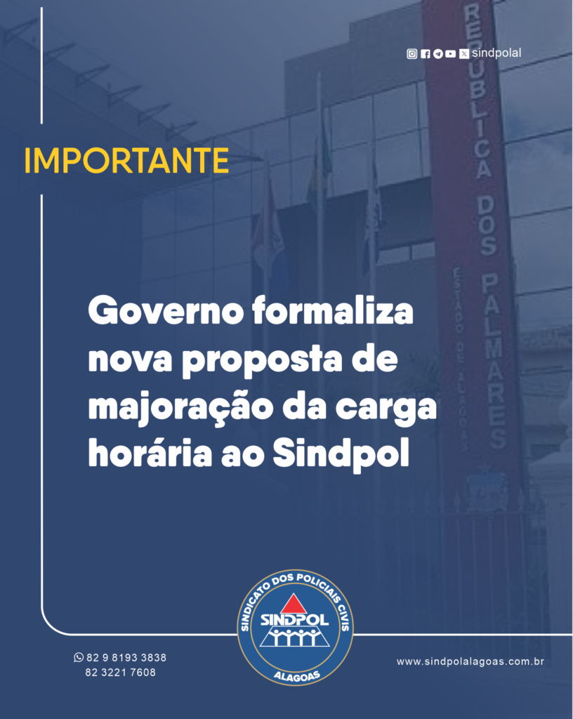 Nesta sexta-feira (30), representantes do Sindicato dos Policiais Civis de Alagoas (Sindpol) se reuniram com integrantes do Governo do Estado no Palácio do Governo para discutir a formalização de um acordo referente ao aumento da carga horária dos policiais. A proposta elaborada pelo governo será analisada pela diretoria do Sindpol, que busca garantir melhores condições para a categoria.