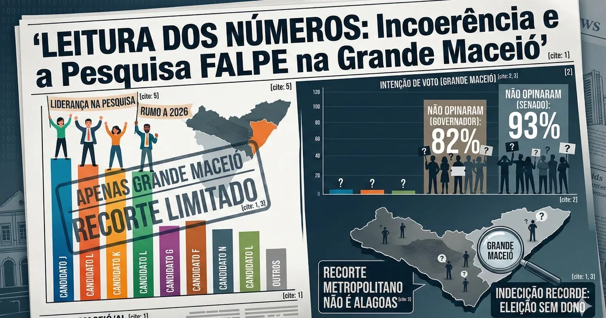 MACEIÓ/AL— Uma pesquisa recentemente divulgada pelo Instituto Falpe, amplamente compartilhada por veículos alinhados à gestão do prefeito de Maceió, JHC, gerou controvérsias e levantou questões sobre sua validade. O jornalista Kléverson Levy, em sua análise, destaca um ponto crucial: o levantamento é restrito à Região Metropolitana de Maceió, o que limita a interpretação dos resultados como um reflexo fiel do estado de Alagoas.