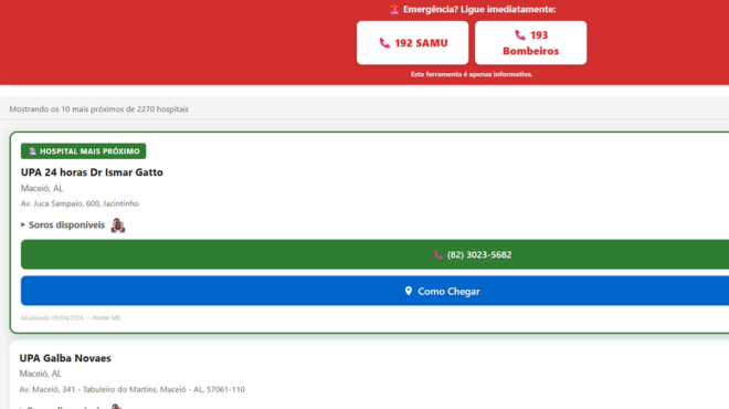 Em situações de emergência, a informação correta é fundamental. Com essa necessidade em mente, foi lançado o site SoroJá, que de maneira simples e intuitiva, aborda um dos maiores desafios em acidentes com escorpiões: identificar quais unidades de saúde têm o soro antipeçonhento disponível. Isso se torna crucial, considerando que nem todas as UPAs ou hospitais são aptos para atender esse tipo de emergência.