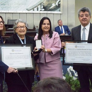 Na manhã desta segunda-feira, 6, a Assembleia Legislativa de Alagoas realizou uma sessão solene para a entrega da Medalha de Mérito Lily Lages e do título de Cidadã Honorária ao nome de Nancy Virgínia Karns Lyra. A honraria foi proposta pela deputada Fátima Canuto (MDB), em reconhecimento aos significativos serviços prestados por Virgínia ao estado. O evento contou com a presença de familiares, amigos, autoridades políticas e representantes do setor agropecuário alagoano.